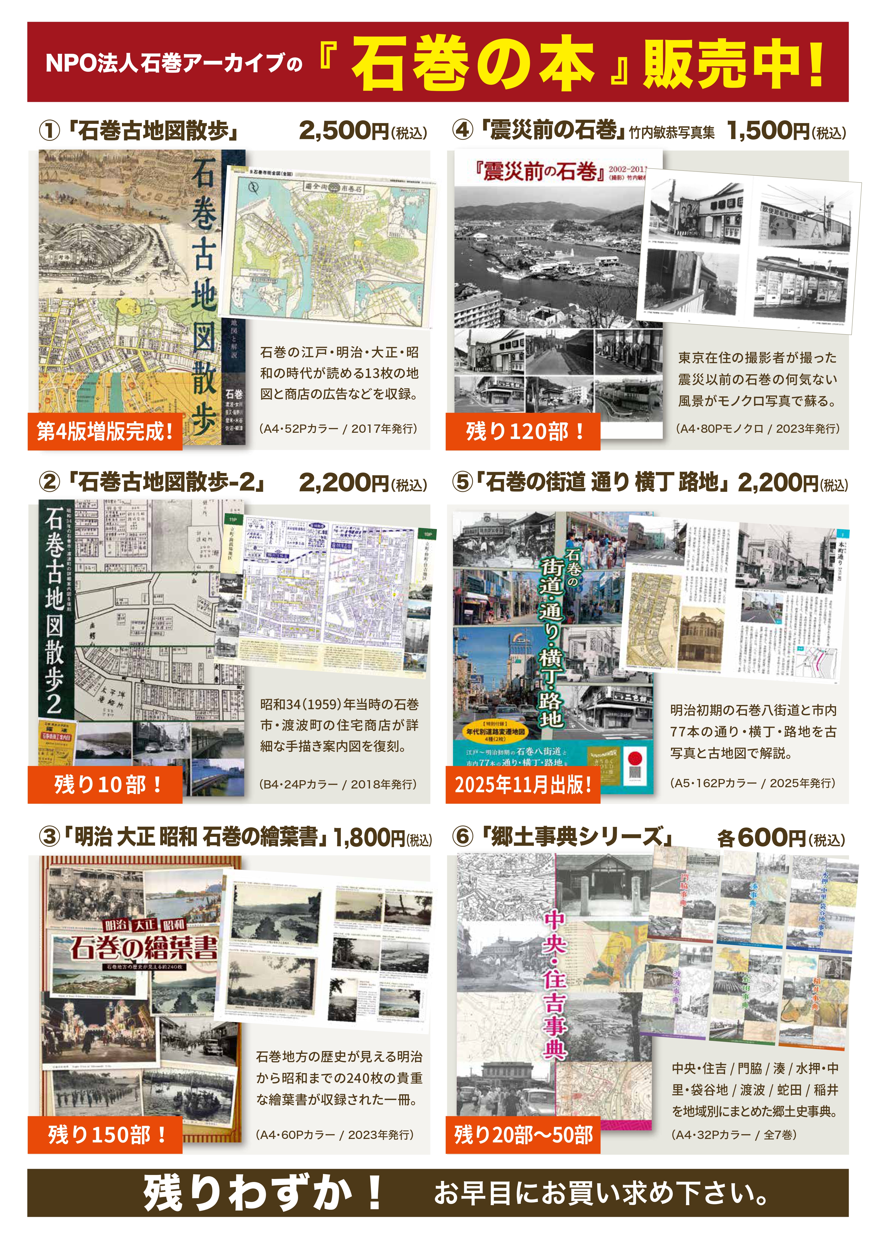 | 発行 | 「石巻アーカイブ」地図研究会 〒986-0822 石巻市中央3-1-15(邊見 清二) 事務局 FAX:022-215-3188[(株)感動コーポレーション内] |